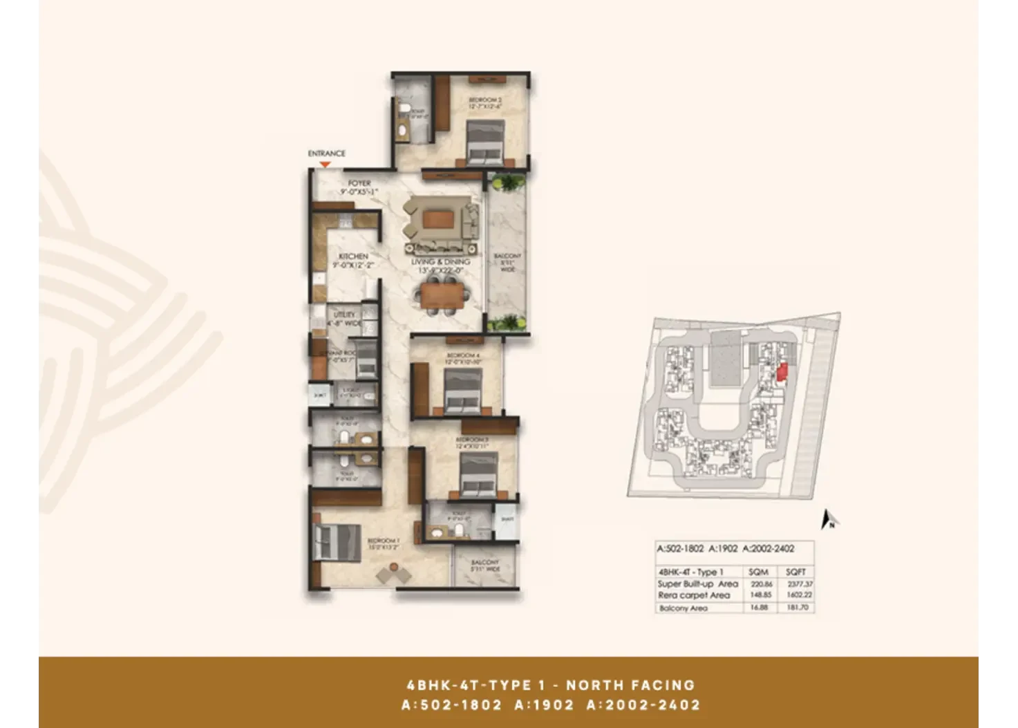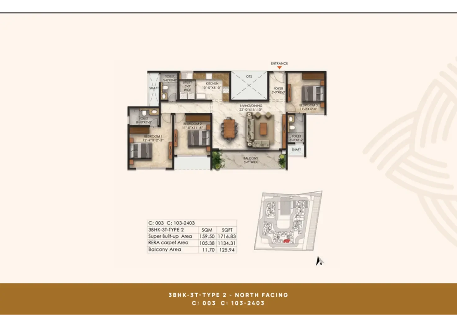 A: Explore spacious 3 & 4 BHK, sized from 1464 to 1950 Sq.Ft., thoughtfully planned to cater to both family living and investment goals.