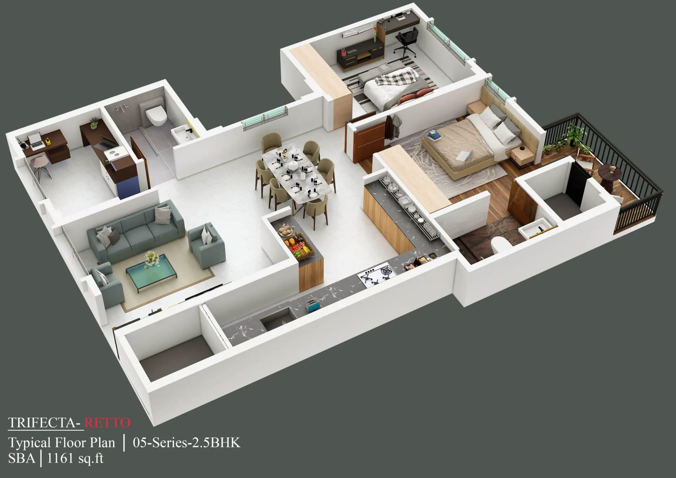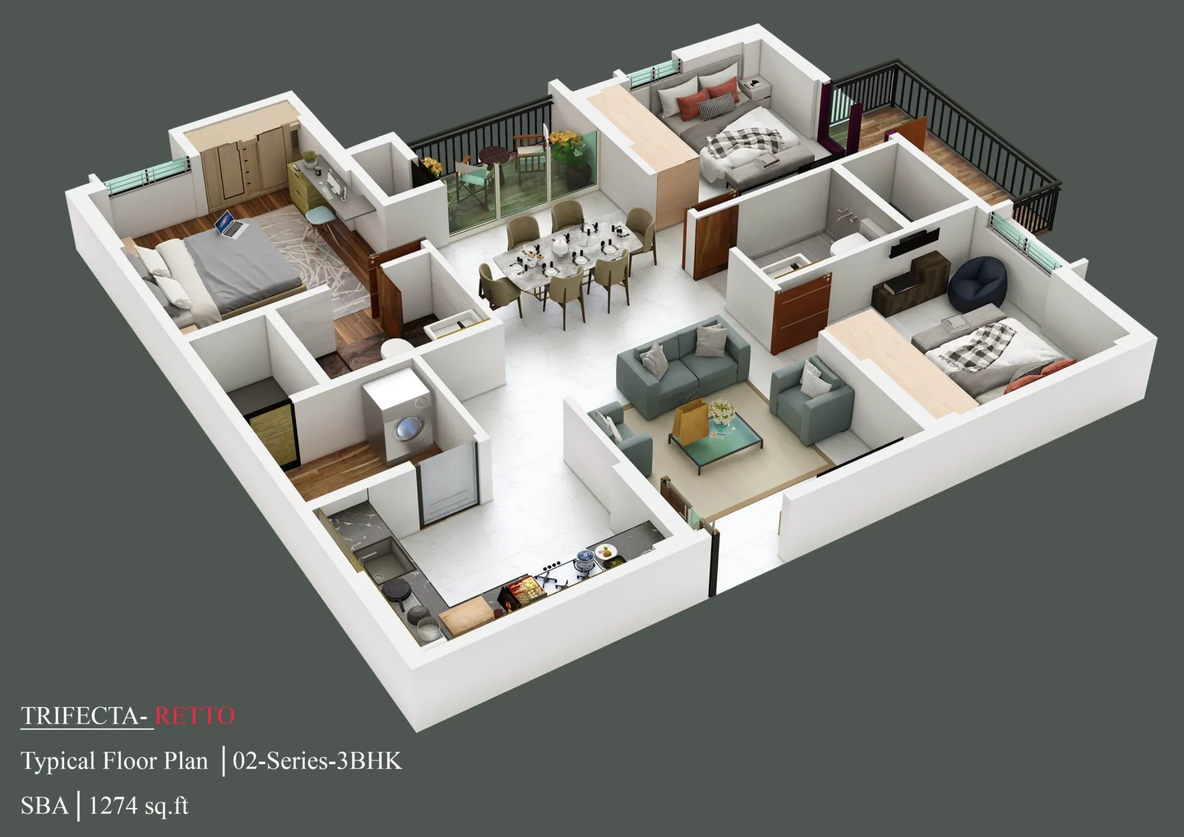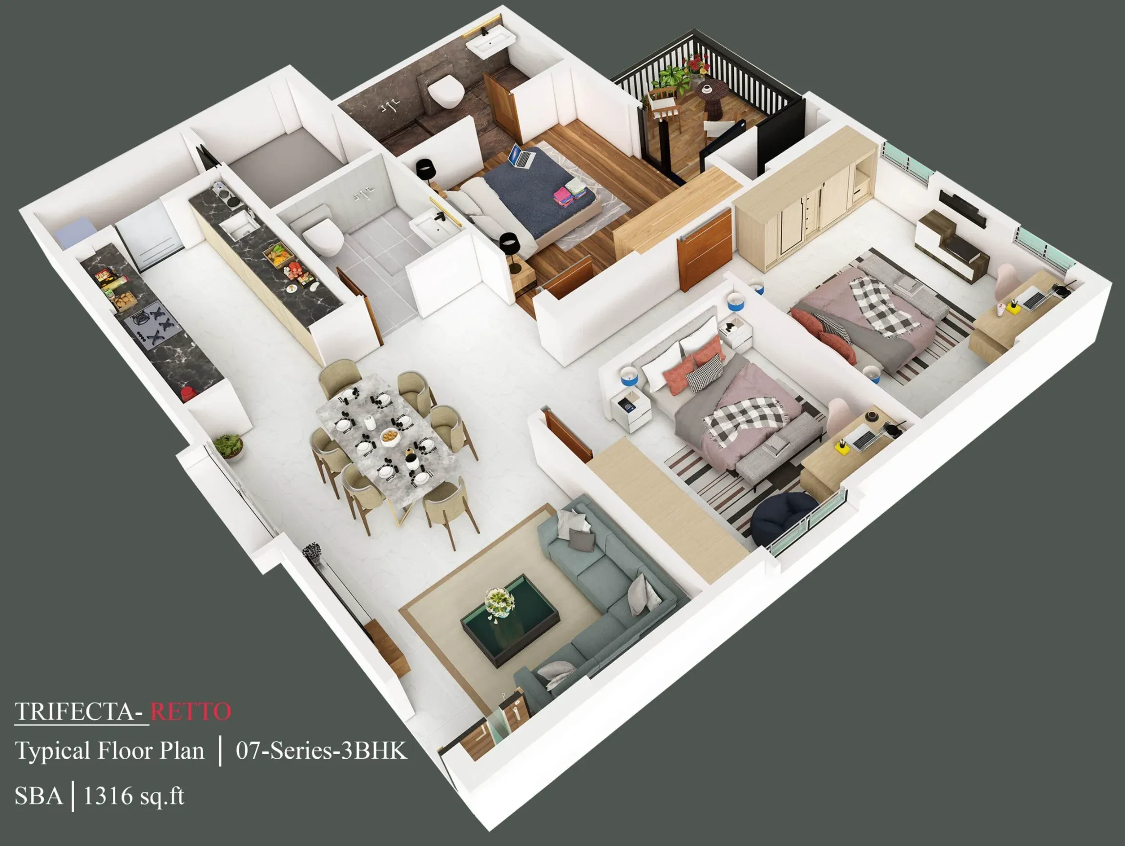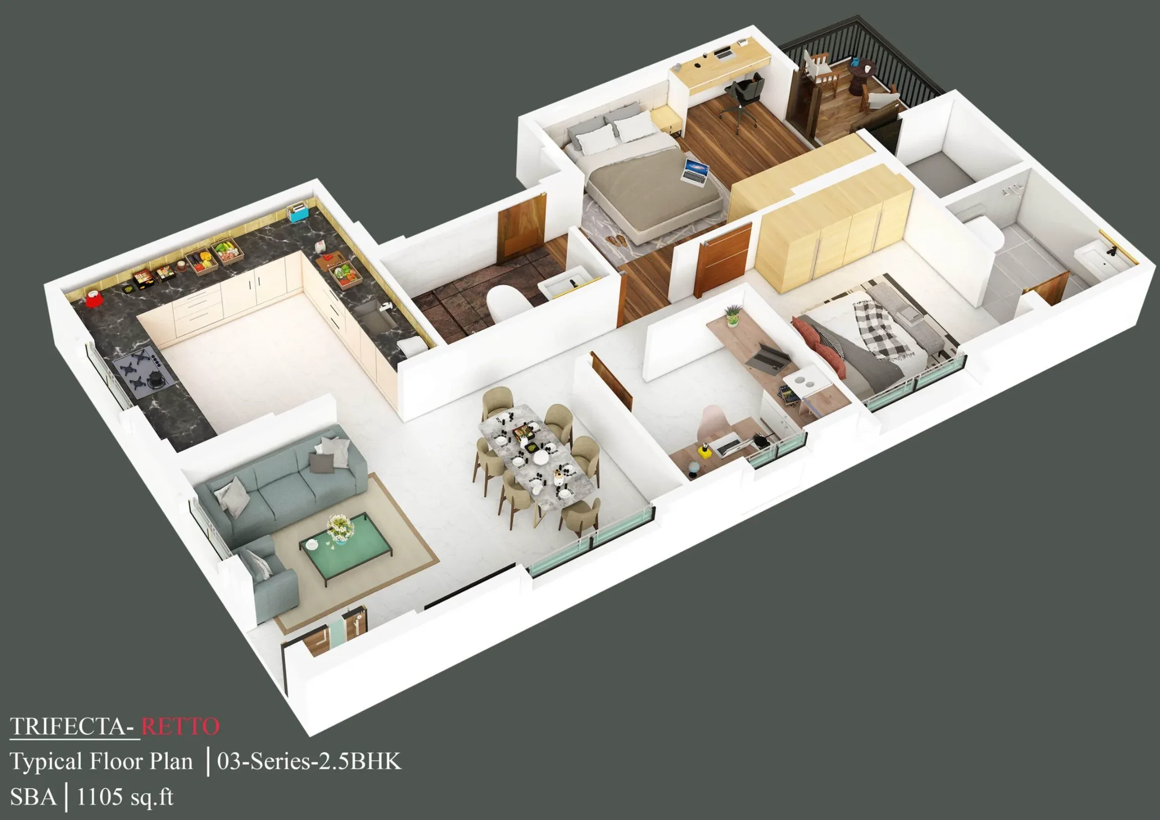 What sets Trifecta Retto - apartments for sale in Sarjapur Road apart is its location. We understand that where you live greatly impacts your lifestyle. That's why we've chosen Sarjapur Road - a thriving area that combines the tranquility of suburban life with the convenience of city living. You'll find yourself surrounded by excellent schools, healthcare facilities, shopping destinations, and entertainment options.