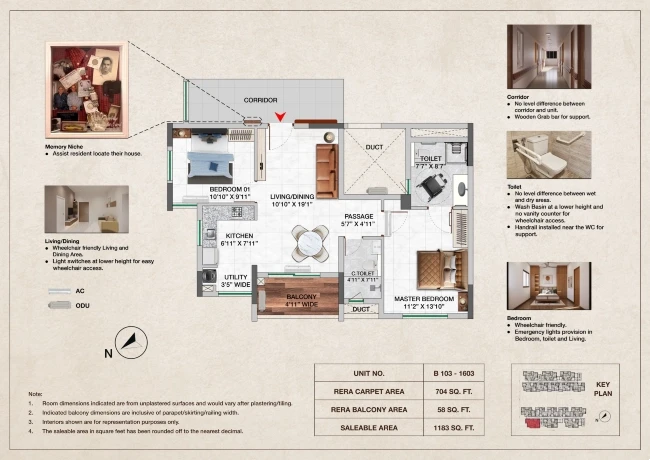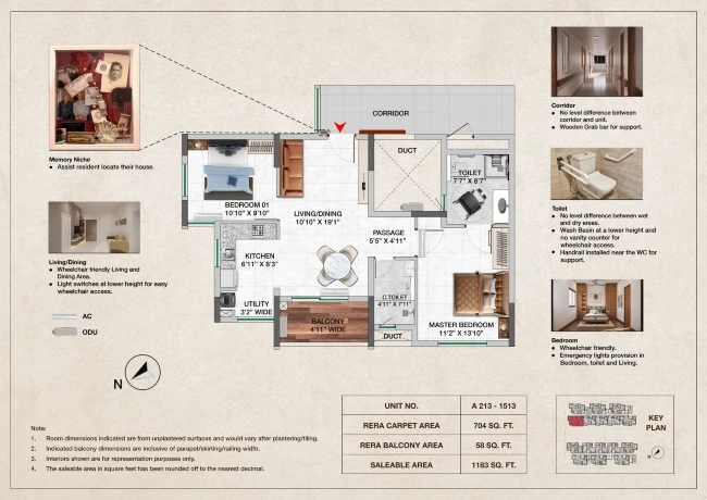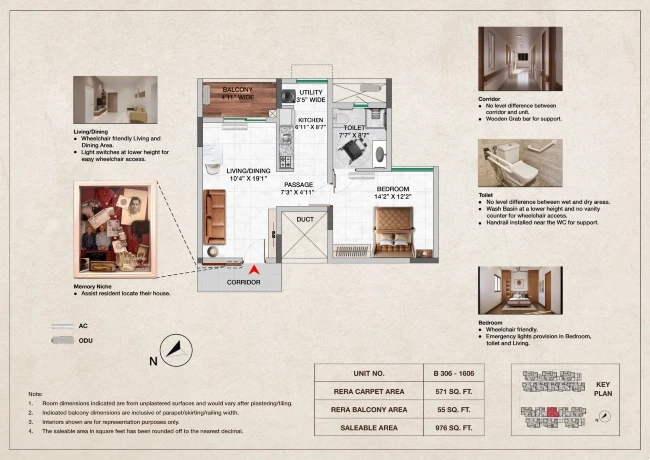 Emergency lights provision in Bedroom, toilet, and Living areas.