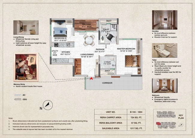 No level difference between common corridor and unit entry.