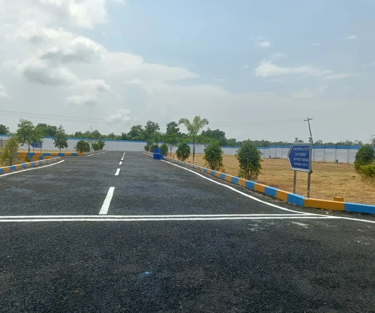 Welcome to Universal City SM Promoterrs brings you well-planned residential plots in the swiftly developing destination of Thiruporur, Chennai. With only 33 exclusive units of size between 775 sq ft to 1711 sq ft, it is suitable for long-term investment by families looking for a safe investment in a refreshing environment. Being a DTCP-approved property, it offers a clear title and ease of ownership, providing reassurance to homebuyers. The location is well chosen, with easy accessibility. Universal City in Thiruporur is advantageous in terms of connectivity. The way it is built, it has effectively related proper amenities and a secure compound wall to contribute to a secure lifestyle. Which means you are on the right track, with good connectivity to quality infrastructure, these plots are the ideal place to build your dream home, or a valuable long-term investment. Book your plot today!