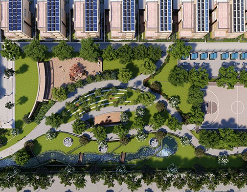 Finishes Low VOC paints & sealants Cool paint used (to reduce AC burden) Electrical 6 KVA solar panels for each villa EV charging points for each villa Structure AAC blocks Fly ash in concrete