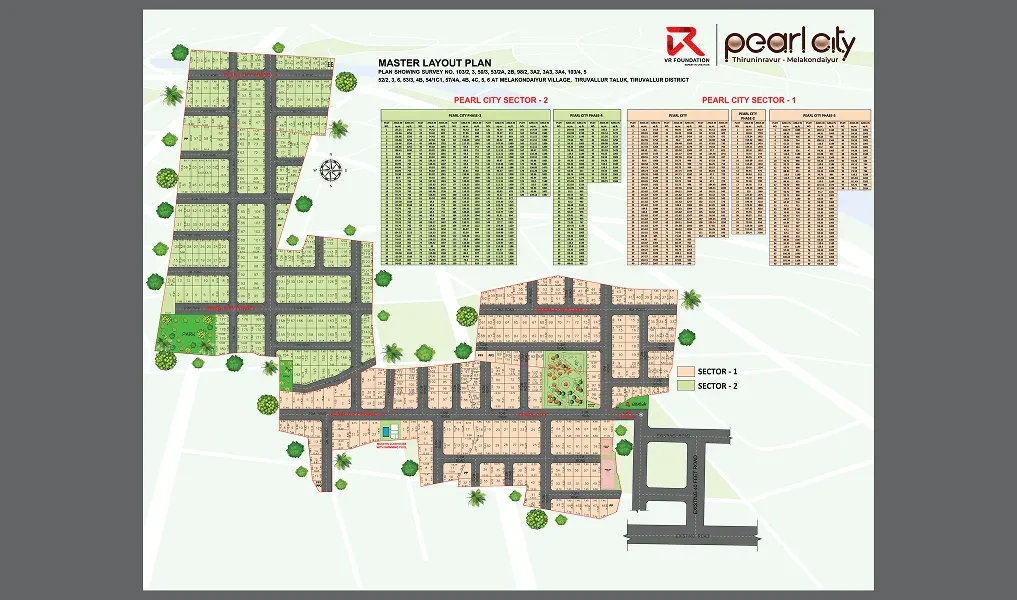 .Picture a place where space, convenience, and comfortalign perfectly. Pearl City, developed by VR Foundation,offers DTCP-approved plots in Thiruvallur, Chennai, providing the ideal base to build the home of your dreams. A landmark project is located in a planned gated community offering 477 premium plots that range from 800 sq ft to 2400 sq ft. Some include a backyard. Whether you are a homeowner, first-time buyer, or investor, we have a plot for you. The planned community is complete with over 30+ modern amenities, as well as a clubhouse, which makes it all you will need for a convenient lifestyle with access to peace of mind. Pearl City in Thiruvallur brings peace of mind and potential profits. Enter a community designed for today with anticipated success tomorrow